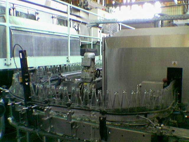 Am Auslauf wird der Flaschenhals durch eine Dusche gereinigt, sieht man hier schön.