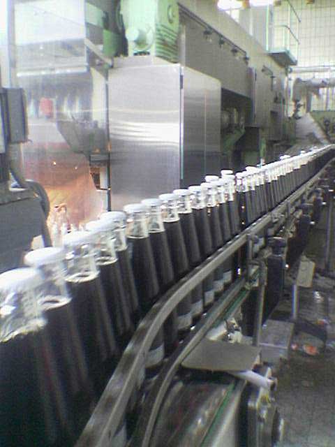 Die fertigen Flaschen fahren einer glücklichen Zukunft entgegen ...